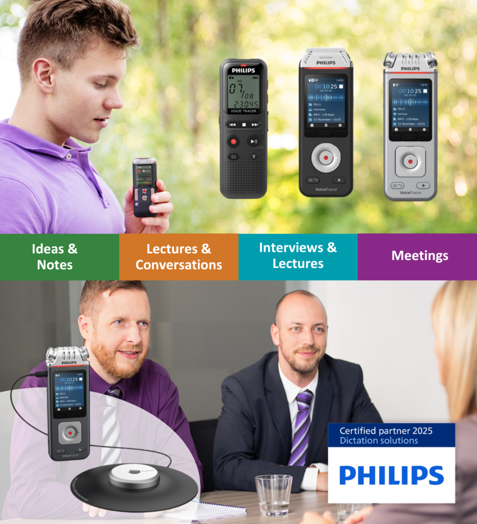 Stop worrying about missing important information. Our selection features the acclaimed Philips DVT models, each optimised for a specific use: Â Quick Notes, in-depth Interviews, Lectures, or Meeting recording. Â Find the perfect voice recorder to match your professional and personal needs.