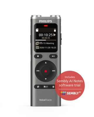 • 8 GB of internal memory and microSD card slot for expanded capacity • Rechargeable battery provides up to 35 hours of recording time • Sembly AI Notes software turns your recordings into transcripts and summaries